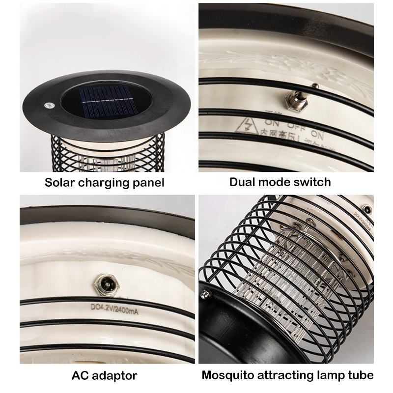 Solar-Powered Mosquito Lamp with Electric Shock Outdoor Garden, Countryside, Eco-Farm, Courtyard Mosquito Repellent Light