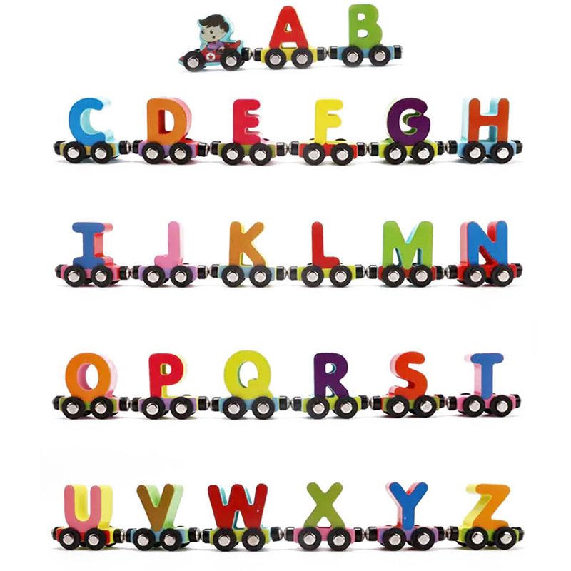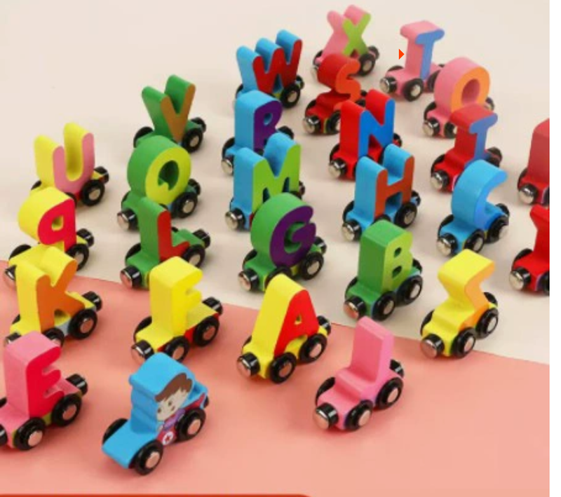 (Ghana's Top Seller) 27-Piece Wooden Alphabet Magnet Train Set for Kids | Moving Alphabet Educational Toy