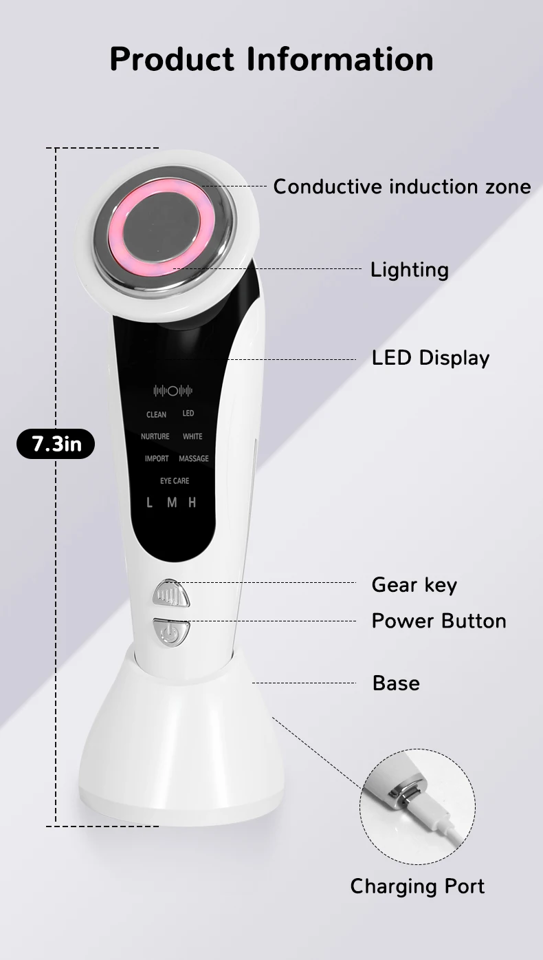 Cleaning: Orange + Temperature-Induced Vibration LED; Red + Temperature + Inductive Vibration Nurturing: Blue + Inductive Vibration White; Yellow + Temperature + Inductive Vibration Infusion: Purple + Temperature + Inductive Vibration Massage: Green + Massage You Care: Blue + Temperature + Inductive Vibration