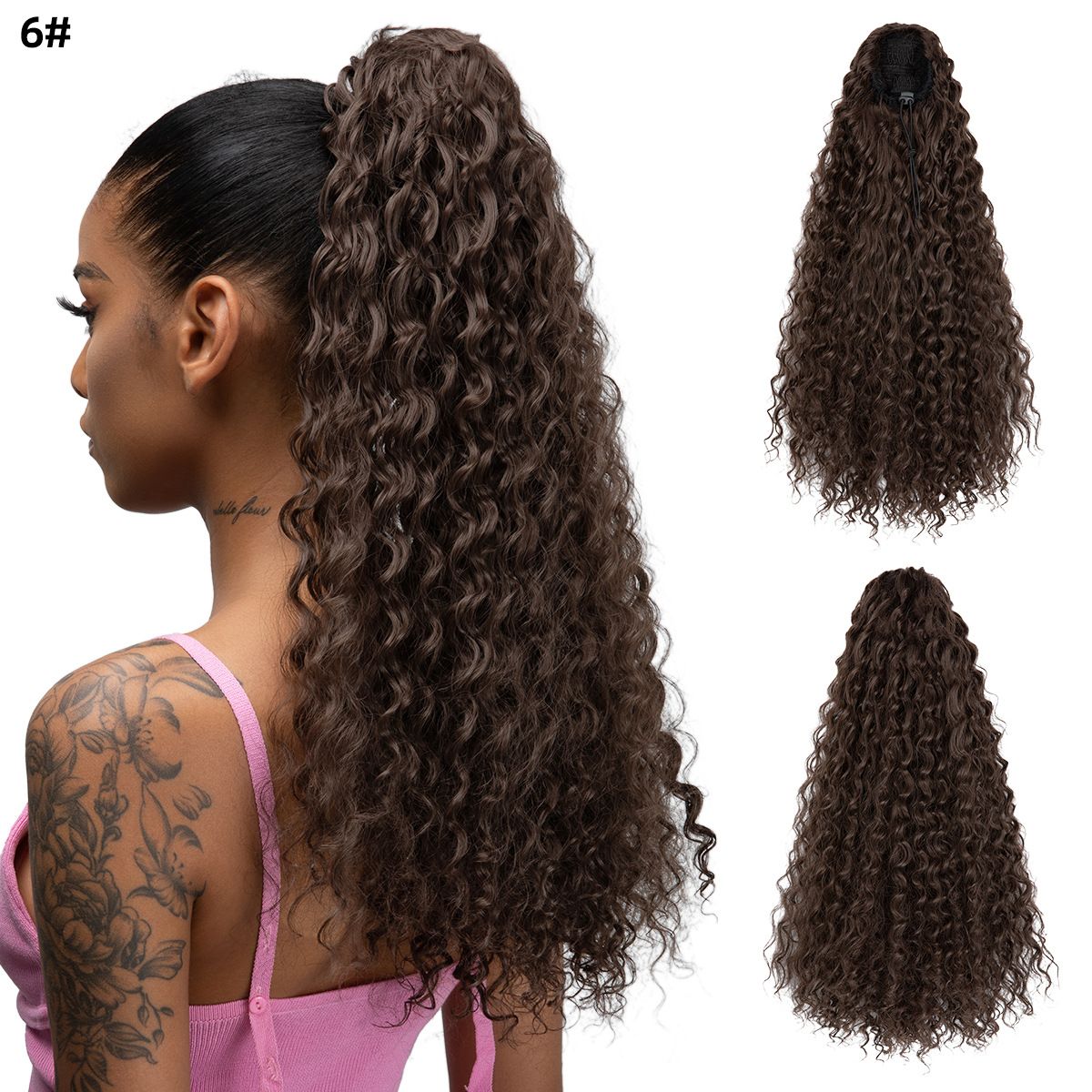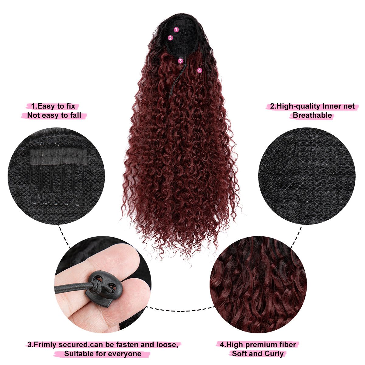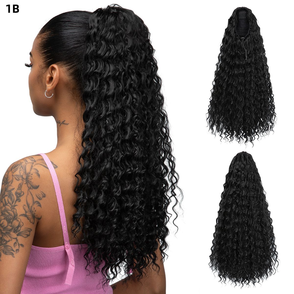 Women's African Ponytail Wig with Drawstring Adjustment, Synthetic Fiber Ponytail with Wavy Curls